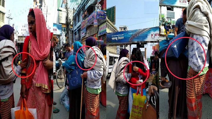 মাঝ বয়সী ব্যক্তির মুখে দাড়ি। গায়ে শীতের চাদর, মাথায় টুপি। প্রথম দেখায় মনে হবে অসুস্থ, বের হয়েছেন সাহায্যের আশায়। রোববার দুপুরে তিনি ঘুরছিলেন রাজশাহী নগরীর সাহেববাজার ও আরডিএ এলাকায়। যেসব স্থানে নারীদের জটলা সেখানেই তার আনাগোনা।