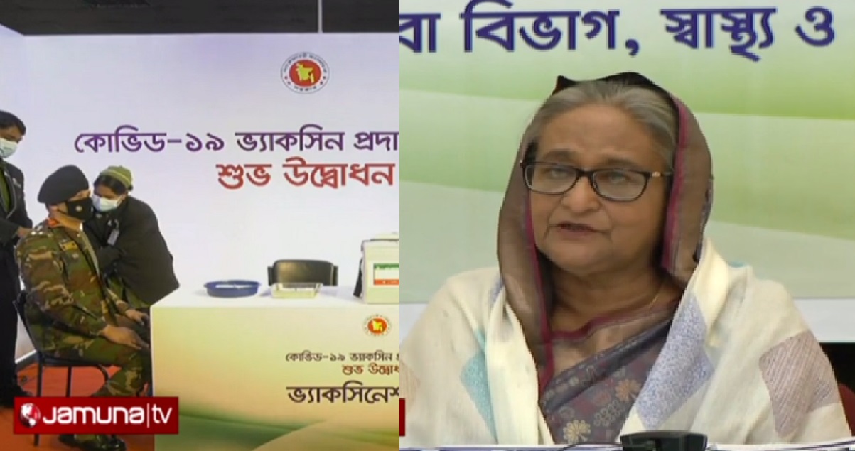 প্রথম ভ্যাকসিন নিতে আসেন সিনিয়র নার্স রুনু ভেরোনিকা কস্তা। এসময় প্রধানমন্ত্রী তাকে জিজ্ঞেস করেন, নার্ভাস লাগছে না তো? রুনু জানান, ভয় পাচ্ছেন না। এসময় প্রধানমন্ত্রী তার প্রশংসা করে বলেন, দোয়া করি তুমি জীবনে আরও অনেক মানুষের সেবা করবে।