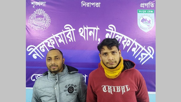 গ্রেফতার দুই যুবক হলেন, নীলফামারী সদর উপজেলার গোড়গ্রাম ইউনিয়নের হাজীপাড়া এলাকার ইস্কান্দার মির্জার ছেলে সাকিব সরকার (২৮) ও টুপামারী ইউনিয়নের দোগছি এলাকার আমিনুর রহমানের ছেলে শাহাজাদা তালিব (২৩)।
