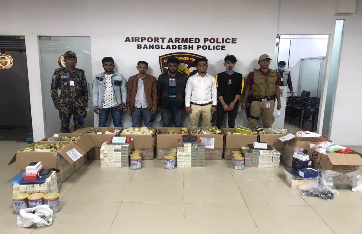 শাহজালাল আন্তর্জাতিক বিমানবন্দর থেকে ২০০ কেজি কসমেটিকস ও ১২৬ কার্টুন সিগারেটসহ ৫ জনকে আটক করেছে বিমানবন্দর আর্মড পুলিশ।