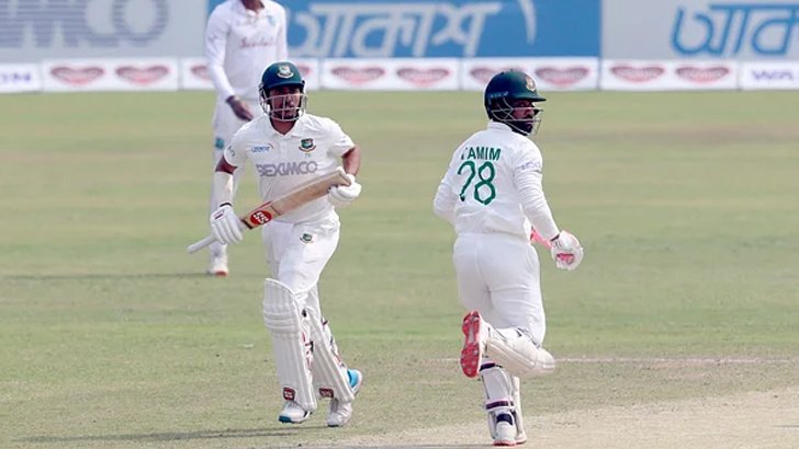 প্রথমে সৌম্য ব্রার্থওয়েটের বলে স্লিপে কর্নওয়েলের হাতে ক্যাচ দিলেন। ব্যক্তিগত ১৩ রানে ফেরেন তিনি। তামিমের আউটয়ের ধরনও ছিলো একই রকম। মাসলের বলে ড্রাইভ খেলতে গিয়ে শর্ট কাভারে দাঁড়িয়ে থাকা ফিল্ডারের হাতে সহজ ক্যাচ দিয়ে মাঠ ছাড়েন তামিম ইকবাল।