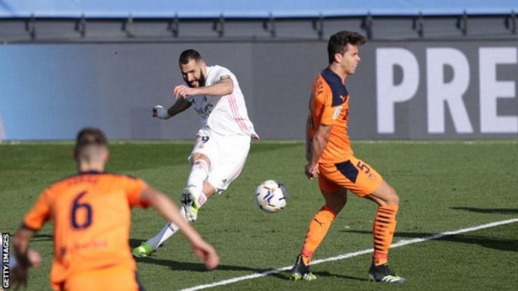 ঘরের মাঠে ভ্যালেন্সিয়ার বিপক্ষে শুরু থেকেই দাপুটে ছিলো লস ব্লাঙ্কোস। ম্যাচের ১২ মিনিটে ক্রুসের বাড়ানো বলে স্কোর শিটে নাম তোলেন করিম বেনজেমা। প্রথমার্ধেই ২য় গোলের দেখা পায় রিয়াল।