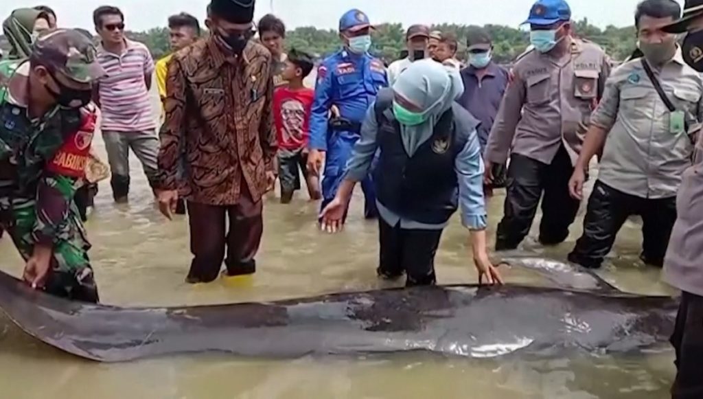 এবার ইন্দোনেশিয়ার সমুদ্র সৈকতে আটকে মৃত্যুর মুখে ঢলে পড়লো এক দল তিমি। শুক্রবার মাদুরা দ্বীপের উপকূলে উঠে আসে প্রায় অর্ধশত তিমি। এর মধ্যে মৃত্যু হয় ৪৬টির। স্থানীয়রা অনেক চেষ্টায় উদ্ধার করে সাগরে ফেরত পাঠাতে সক্ষম হয় তিনটি তিমিকে।