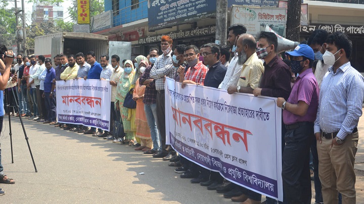 রোববার নোয়াখালী প্রেসক্লাব এর সামনে এ মানববন্ধন কর্মসূচি অনুষ্ঠিত হয়। মানববন্ধনের পরে নোয়াখালী প্রেসক্লাবে এক জনাকীর্ণ সংবাদ সম্মেলন অনুষ্ঠিত হয়।