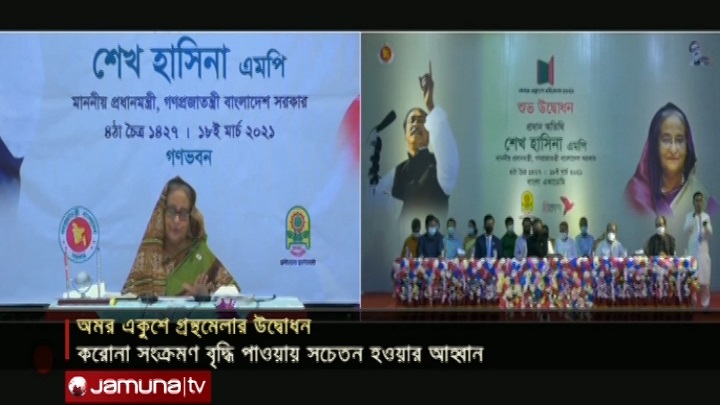 শুরু হলো বাঙালির প্রাণের মেলা অমর একুশে গ্রন্থমেলা। বৃহস্পতিবার বিকেলে ভার্চুয়াল মাধ্যমে মাসব্যাপী এ মেলার উদ্বোধন করেন প্রধানমন্ত্রী শেখ হাসিনা।