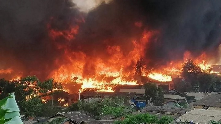 ফায়ার সার্ভিস জানায়, বিকেল সোয়া চারটার দিকে ৯ নম্বর ক্যাম্পের একটি ব্লকে আগুনের সূত্রপাত। পুড়ে যায় ২, ৮, ৯ ও ১৭ নম্বর ক্যাম্পের বাড়িঘর, দোকানপাট ও হাসপাতাল। একপর্যায়ে পাশের গ্রামেও তা ছড়িয়ে পড়ে।