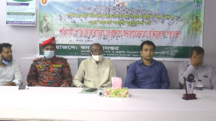 সিরাজগঞ্জে পরিযায়ী পাখি/জীববৈচিত্র সংরক্ষণে জনসচেতনতা বৃদ্ধিমূলক এক আলোচনা সভা অনুষ্ঠিত হয়েছে। শনিবার দুপুরে সিরাজগঞ্জ পাবলিক লাইব্রেরি মিলনায়তনে এ সভা অনুষ্ঠিত হয়।