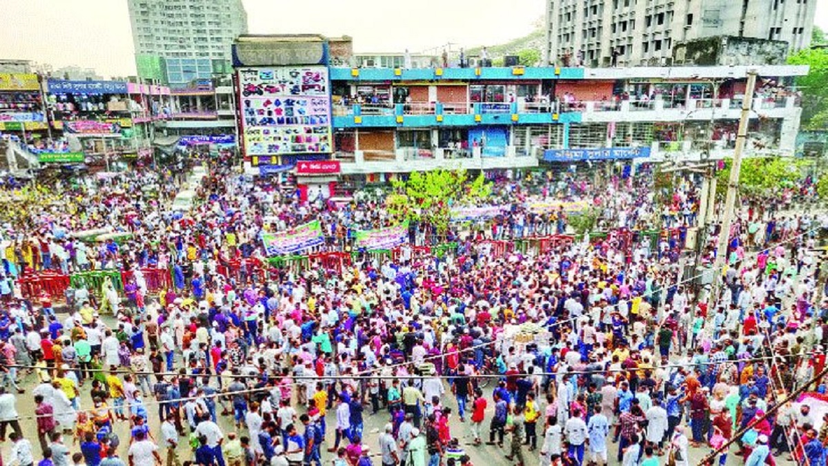 সোমবার বিকেলে নগরীর নিউমার্কেটের সামনে বিক্ষোভ প্রদর্শন করেন তারা। জড়ো হন চট্টগ্রামের ছোট বড় সব মার্কেট, শপিং মল ও দোকানের মালিক, কর্মচারী এবং ব্যবসায়ী সমিতির নেতারা। বের করেন বিশাল বিক্ষোভ মিছিল।