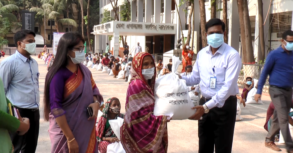 লকডাউন পরিস্থিতিতে নারায়ণগঞ্জে কর্মহীন হয়ে পড়া তিন শতাধিক দিনমজুর পরিবারকে খাদ্য সহায়তা দিয়েছে জেলা প্রশাসন।
