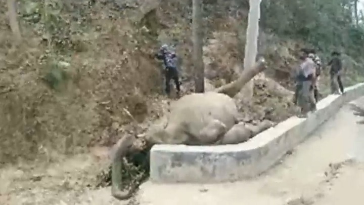 সোমবার ভোর রাতের দিকে হাতিটি পাহাড় থেকে নিচে সড়কের পাশের পাকা ড্রেনের উপর পড়ে গিয়ে মাথায় আঘাত পেয়ে ঘটনাস্থলেই মারা যায়।