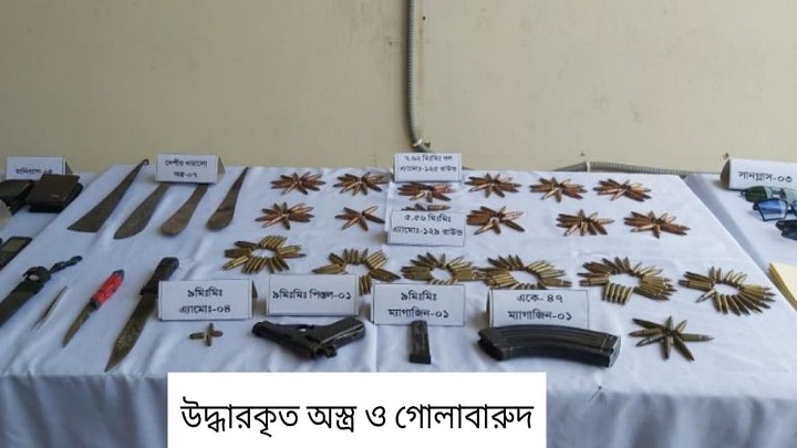 বান্দরবানের দুর্গম পাহাড়ি এলাকায় সেনাবাহিনীর অভিযানে অস্ত্রসহ বিপুল পরিমাণ গোলাবারুদ ও সরঞ্জাসম উদ্ধার করা হয়েছে। বুধবার ভোর ৫টার দিকে বান্দরবান সেনা জোনের সেনাসদস্যরা নোয়াপাতাং নামক এলাকায় একটি সফল অভিযান পরিচালনা করে।