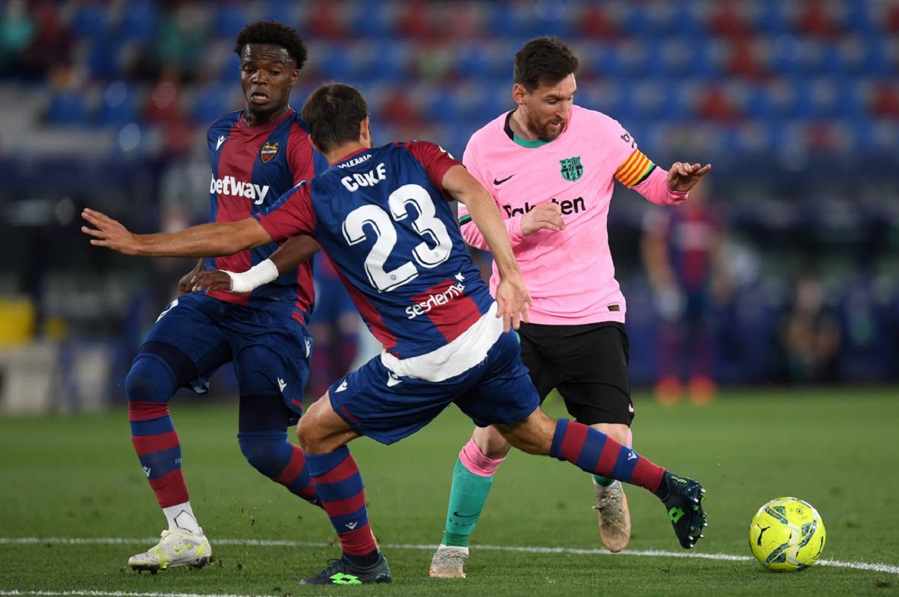কিন্তু দ্বিতীয়ার্ধেই খেই হারায় কুমেনের দল। ৫৭ মিনিটে মেলেরো আর এর ২ মিনিট পর মোরালেসের গোল করলে সমতায় ফেরে লেভান্তে। ওসমানে ডেম্বেলের গোলে ৫ মিনিটের মাথায় আবারো এগিয়ে যায় বার্সেলোনা।