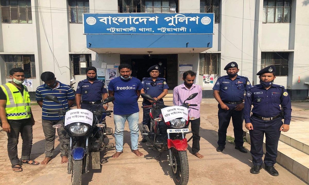 পটুয়াখালীতে বন্ধুত্ব পাতিয়ে মোটরসাইকেল চুরি করার ঘটনায় চোরচক্রের ৬ সদস্যকে আটক করেছে পুলিশ। এ সময় চুরি করা ৪টি মোটরসাইকেল উদ্ধার করা হয়েছে। মঙ্গলবার রাতভর পটুয়াখালী শহর ও মহিপুর থানার বিভিন্ন স্থানে অভিযান চালিয়ে পুলিশ এদেরকে আটক করে।