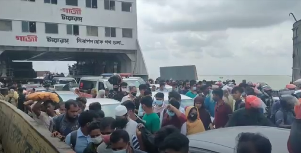 এদিকে লকডাউনে গণপরিবহন বন্ধ থাকায় শিমুলিয়াঘাটে পৌঁছে ঢাকামুখী যাত্রীদের গন্তব্যে পৌঁছাতে হচ্ছে ছোটো ছোটো যানবাহনে ভেঙে ভেঙে। এতে ভোগান্তির পাশাপাশি তাদের গুনতে হচ্ছে বাড়তি ভাড়া।