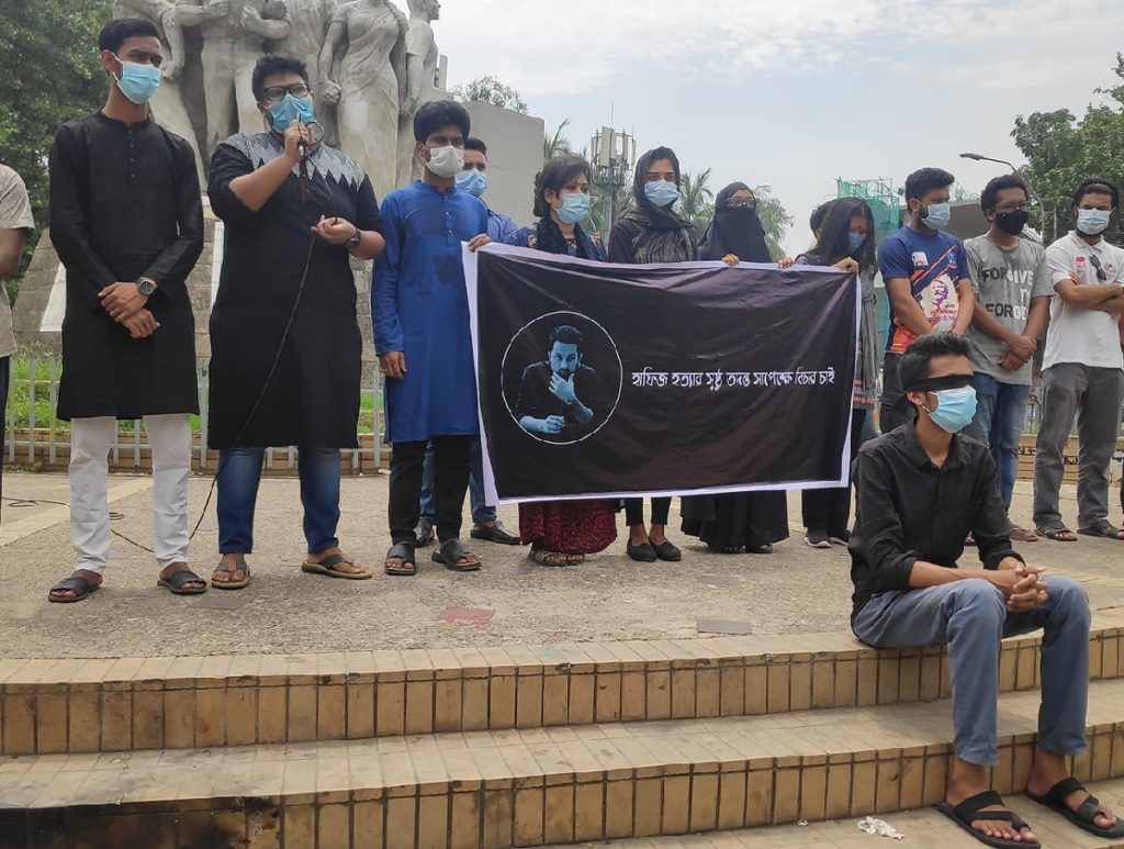 হাফিজকে হত্যা করা হয়েছে দাবি করে ঘটনার সুষ্ঠু তদন্ত ও বিচার চেয়ে টিএসসি’র রাজু ভাস্কর্যের সামনে মানববন্ধন কর্মসূচি পালন করেছেন সহপাঠীরা।