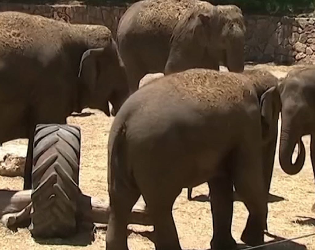 ভিডিওতে দেখা যায়, রকেট হামলার আগে সাইরেনের শব্দ শুনে বাচ্চাকে ঘিরে ধরছে একদল হাতি। আসন্ন বিপদ বুঝতে পেরে শাবকটির চারপাশে তারা ঘুরতে থাকে।