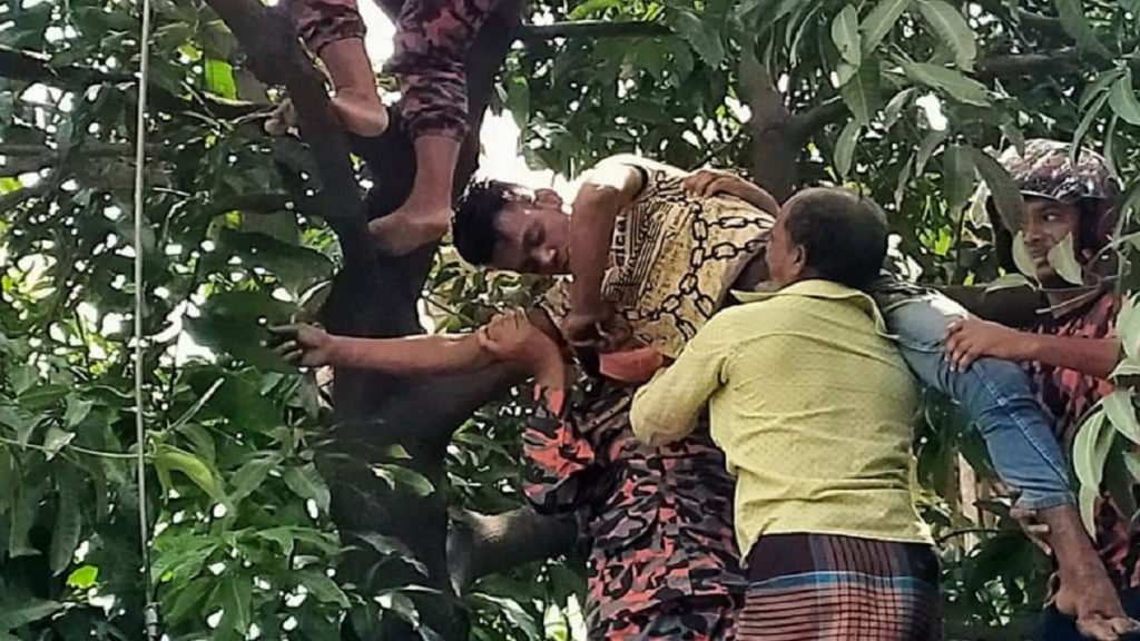 খবর পেয়ে পুলিশ ও ফায়ার সার্ভিসের কর্মীরা ঘটনাস্থলে পৌঁছে তাকে উদ্ধার করে।