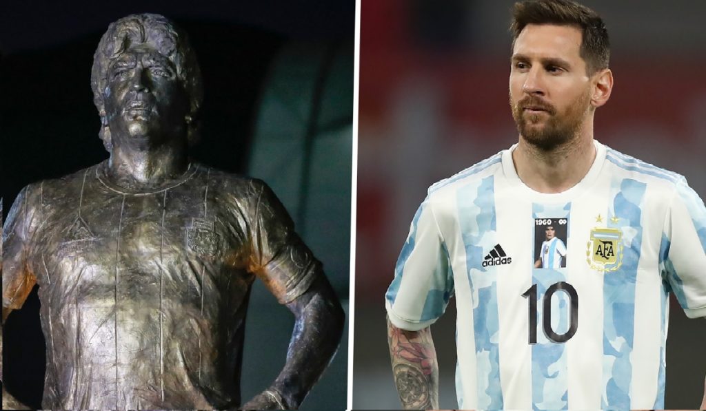 মৃত্যুর বছর না ঘুরতেই মাঠের শত্রু ব্রাজিলের মাটিতে বসছে কোপা আমেরিকার আসর। সেই আসরের প্রথম ম্যাচেই চিলির মুখোমুখি হয়েছে ম্যারাডোনার আর্জেন্টিনা। ম্যাজিকম্যান ম্যারাডোনাকে স্মরণ করতে ভক্তকূলের নানা আয়োজনের সাথে মেসি- ডি মারিয়ারা নিয়েছে অভিনব উদ্যোগ। ফুটবলের জাদুকরকে স্মরণ করতে ম্যারাডোনার ছবি দিয়ে বানানো বিশেষ জার্সি গায়ে চাপিয়ে মাঠে নেমেছিলো দলের ফুটবলাররা। তাছাড়া ম্যারাডোনার একটি ভাস্কর্য উন্মোচন করেছে আর্জেন্টিনা দল। ব্রোঞ্জে গড়া ভাস্কর্যে কোমড়ে হাত দিয়ে দাঁড়িয়ে আছেন ম্যারাডোনা,পায়ের কাছে ফুটবল।
