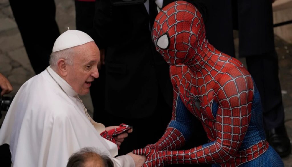 পোপের বক্তব্যের সময় দর্শক সারিতে বসে ছিলেন ম্যাটিয়া ভিলারদিতা নামের ওই ভক্ত। পরে তার সাথে হাত মিলিয়ে উপহার দেন স্পাইডার ম্যানের একটি মুখোশ। শুভেচ্ছা বিনিময় করেন একে অপরের সাথে। সেসময়ও ওই ব্যক্তির পরনে ছিল সুপারহিরোর পোশাক।
