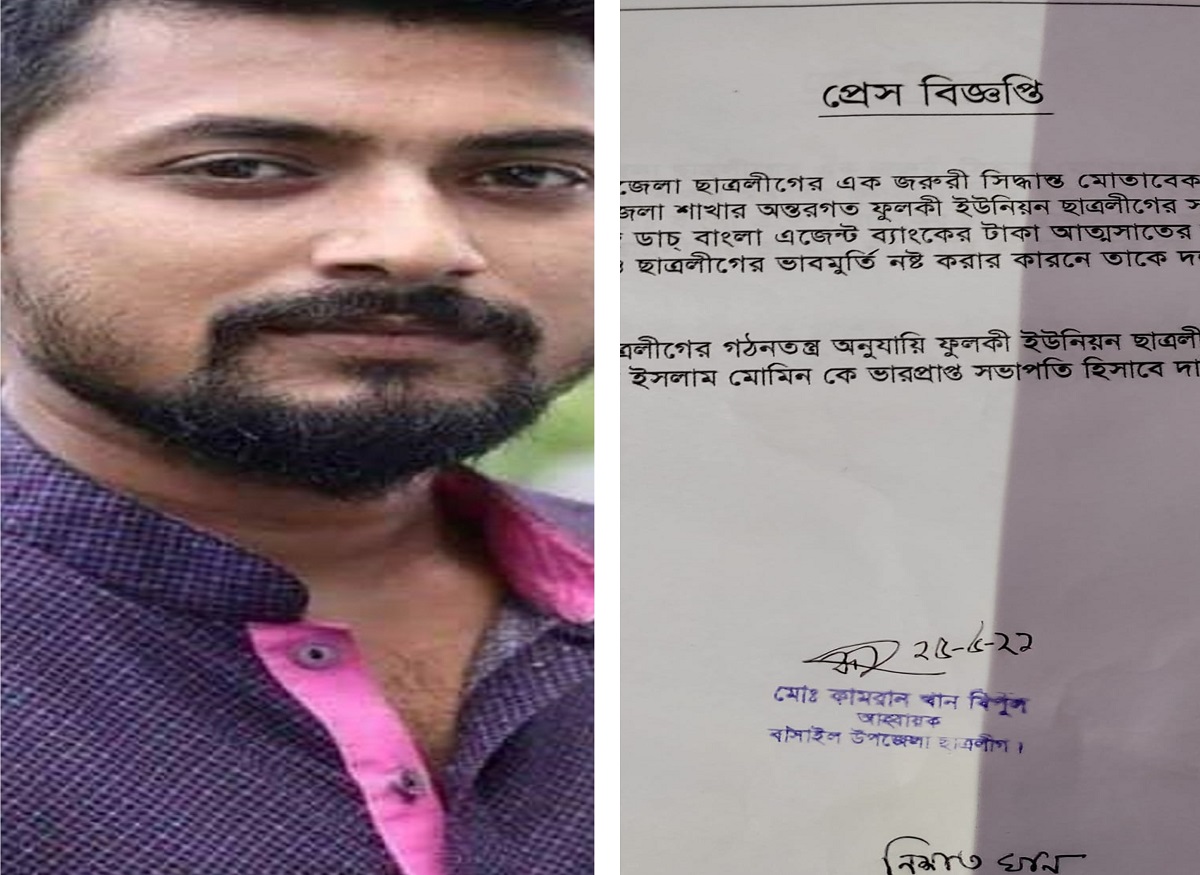 গ্রাহকের টাকা নিয়ে উধাও হওয়া সেই ছাত্রলীগ নেতা বহিস্কার