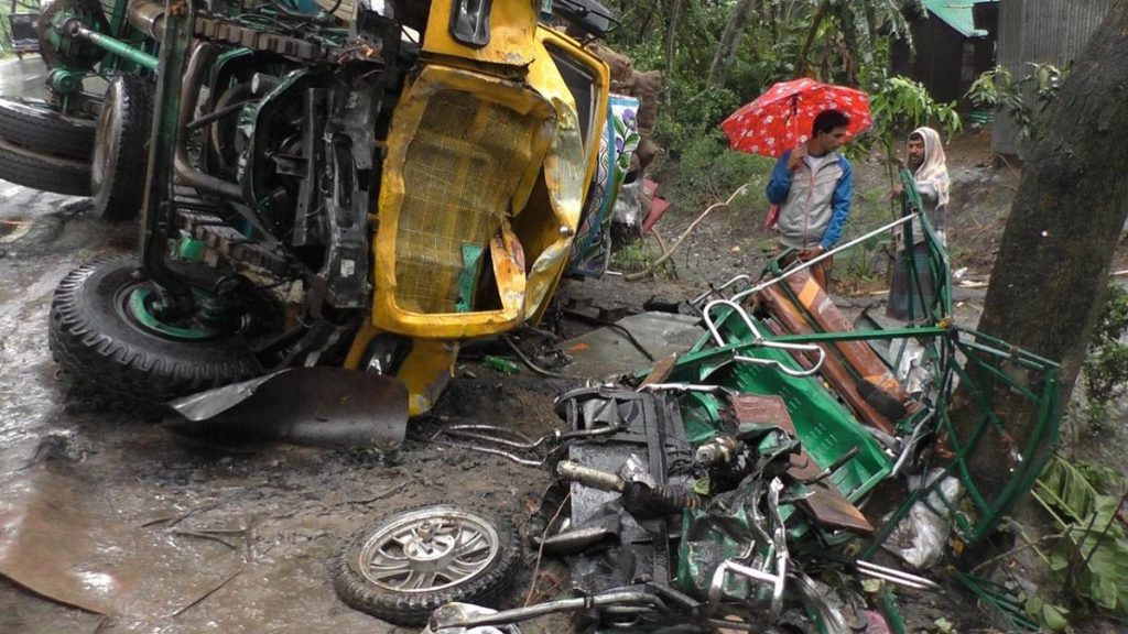 হাইওয়ে পুলিশ ও প্রত্যক্ষদর্শীরা জানান, অটোচালক গাজীপুরের কোনাবাড়ি এলাকা থেকে শুক্রবার (২ জুলাই) রাত ৯ টার দিকে চারজন যাত্রী নিয়ে কালিয়াকৈর উপজেলার সফিপুর বাজারের দিকে যাচ্ছিলেন। একই দিকগামী দুটি ট্রাক পাল্লা দিয়ে যাওয়ার সময় মৌচাক বাস ষ্ট্যান্ড এলাকায় পাশাপাশি থাকা দুইটি অটোরিকশাকে চাপা দেয়। ট্রাকের চাপায় অটোরিকশা দুইটি দুমড়ে মুচড়ে যায়। এতে ঘটনাস্থলে অটো চালক নবাব আলী ও কারখানা কর্মকর্তা জয়নাল হোসেন মৃত্যু বরণ করেন এবং কমপক্ষে আরও চারজন আহত হন।