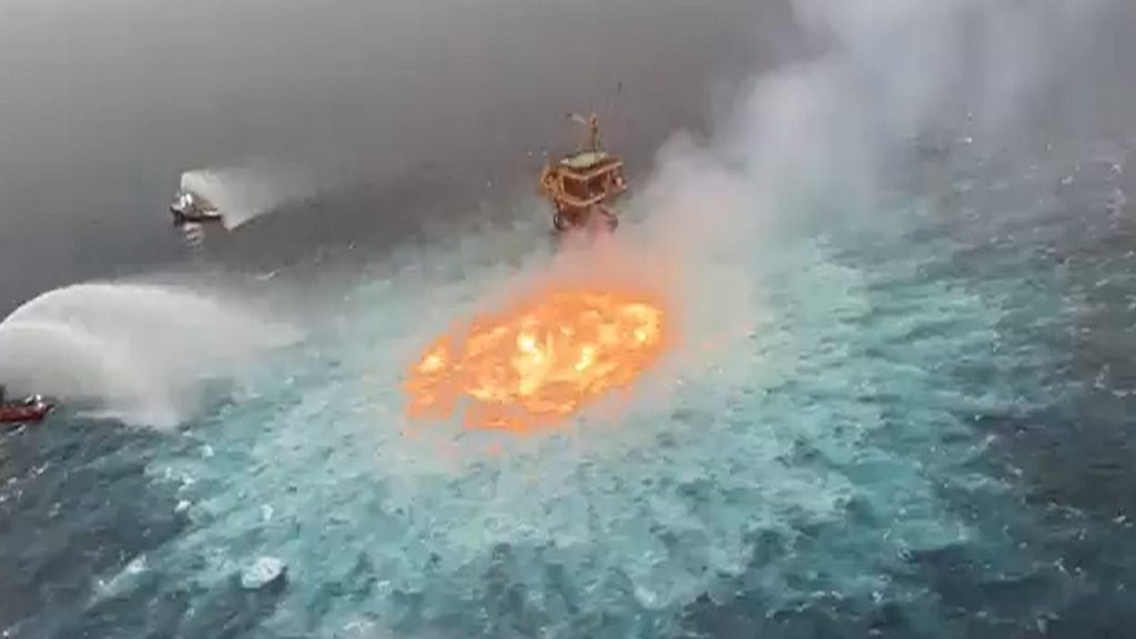 সমুদ্রের মাঝখানে দাউ দাউ করে জ্বলছে আগুন। শুক্রবার (২জুলাই) এই আগুনের দৃশ্য দেখা যায় মেক্সিকো উপসাগরে। সেখানকার ইউকাটান উপদ্বীপ এলাকার কাছেই ঘটে এই ঘটনা। সমুদ্রের তলদেশে গ্যাসের পাইপলাইন ছিদ্র হয়ে মেক্সিকো উপসাগরে এই অগ্নিকাণ্ডের সূত্রপাত ঘটে।