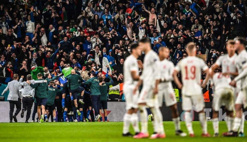 কেবল আক্রমণাত্মক নয়, ক্ল্যাসিক ডিফেন্সিভ ইতালিও গ্রাস করে নিচ্ছে জয়। রুদ্ধশ্বাস সেমিফাইনালে স্পেনকে টাইব্রেকারে ৪-২ গোলে হারিয়ে সেই প্রথম ম্যাচ থেকেই অপ্রতিরোধ্য চেহারার রবার্তো মানচিনির ইতালি দখল করলো ইউরো ফাইনালের টিকেট।