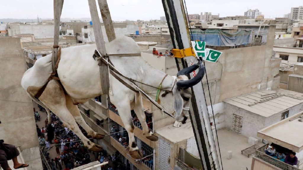 করাচির এক বাড়ির ছাদে গবাদিপশু পালন করা সৈয়দ এজাজ হাসান জানান, বাছুরগুলোকে সিড়ি দিয়ে হাটিয়েই ভবনের ছাদে তুলেছিলাম। ঈদের আগ পর্যন্ত আমি এবং পরিবারের সদস্যরা পশুগুলোর যত্ন নেই। তাই, কোরবানির সময় মোটাতাজা গরুদের ক্রেন ছাড়া নামানো অসম্ভব হয়ে পড়ে।