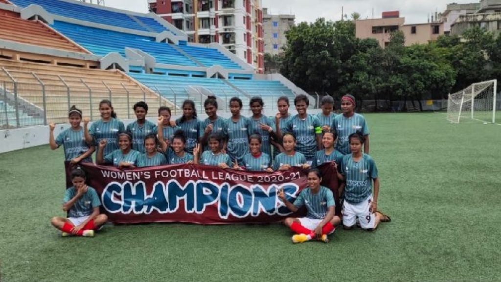এক ম্যাচ হাতে রেখে টানা দ্বিতীয়বারের মতো নারী লিগের চ্যাম্পিয়ন হলো বসুন্ধরা কিংস। জামালপুর কাচারিপাড়া একাদশকে ১৮-০ গোলে হারিয়ে শিরোপা নিশ্চিত করেছে কিংস।
