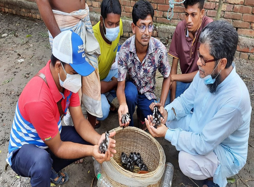 নাটোরের সিংড়ায় মায়ের সাথে নিরাপদ নীড়ে ফিরে গেল দশটি বালিহাঁসের ছানা। সোমবার (১৯ জুলাই) সকাল ৯টার দিকে উপজেলার শাহবাজপুর গ্রাম থেকে ছানাগুলোকে উদ্ধার করে স্থানীয় পরিবেশবাদী সংগঠনের সদস্যরা। পরে মা বালিহাঁসের সন্ধান করে ছানাগুলোকে তার কাছে ফিরিয়ে দেয়া হয়।