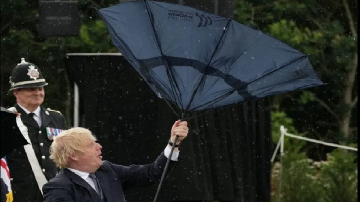 ছাতা বনাম ব্রিটিশ প্রধানমন্ত্রী! বৃষ্টি আর ঝড়ো হাওয়ার মধ্যে হয়ে গেলো তুমুল লড়াই। বুধবার (২৮ জুলাই) স্ট্যাফোর্ডশায়ারের এক অনুষ্ঠানে যোগ দেন বরিস জনসন। বিরূপ আবহাওয়ায় ছাতা নিয়ে পড়েন বিপাকে। তার অবস্থা দেখে কৌতুক করতে ছাড়েননি খোদ যুবরাজ চালর্স।