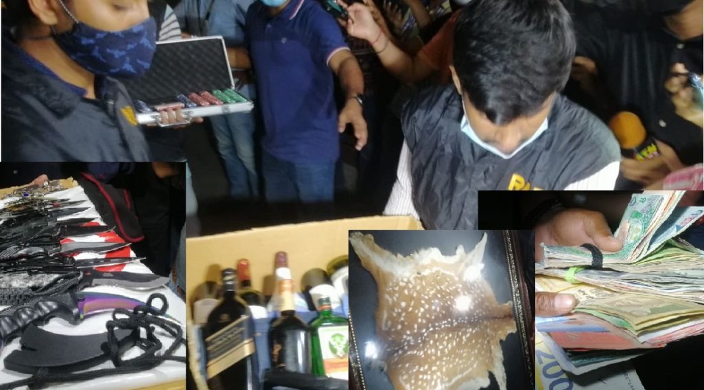 আওয়ামী লীগের বহিষ্কৃত নেত্রী হেলেনা জাহাঙ্গীরের গুলশানের বাসায় অভিযান চালিয়েছে র্যাব। আজ রাত সাড়ে ৮ টা থেকে মাঝরাত পর্যন্ত চার ঘণ্টারও বেশি সময় ধরে অভিযান চালিয়ে হেলেনার বাসা থেকে বেশকিছু ছুরি, ক্যাসিনোতে ব্যবহার হওয়া সরঞ্জাম, বিদেশি মদ, বিদেশি মুদ্রা, হরিণের চামড়া, ওয়াকিটকি ইত্যাদি জব্দ করেছে র্যাব।
