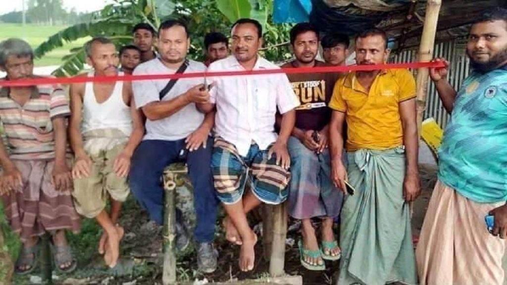 স্থানীয়রা জানান, ইউনিয়ন যুবলীগের সাবেক সাংগঠনিক সম্পাদক আনিছার রহমান খলিল সম্প্রতি নুনগোলার আশোকোলা দক্ষিণপাড়ায় রাস্তার মোড়ে স্থানীয়দের বসার জন্য একটি বাঁশের মাচা নির্মাণ শুরু করেন। যার নাম দেয়া হয় ‘বঙ্গবন্ধু মাচা’। রোববার বিকেলে নেতাকর্মীদের নিয়ে ফিতা কেটে খলিল এই মাচা উদ্বোধন করেন।