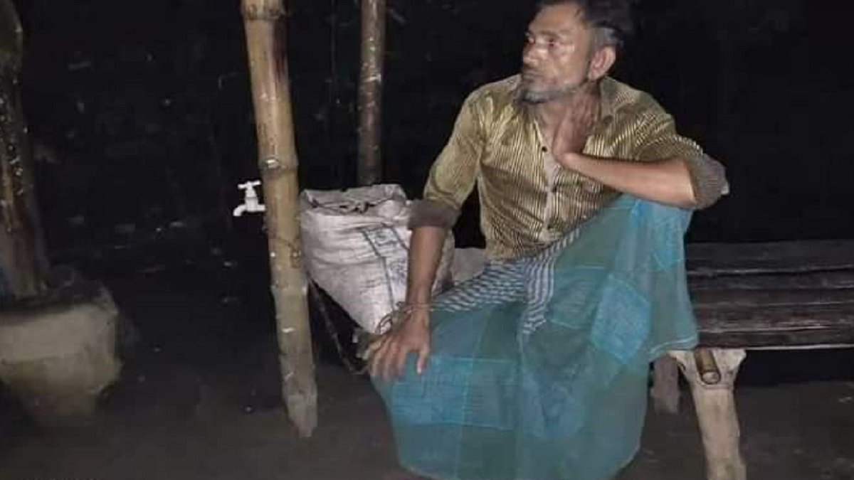 শিকল দিয়ে বেঁধে রাখা দিনমজুর শামছু মিয়া।