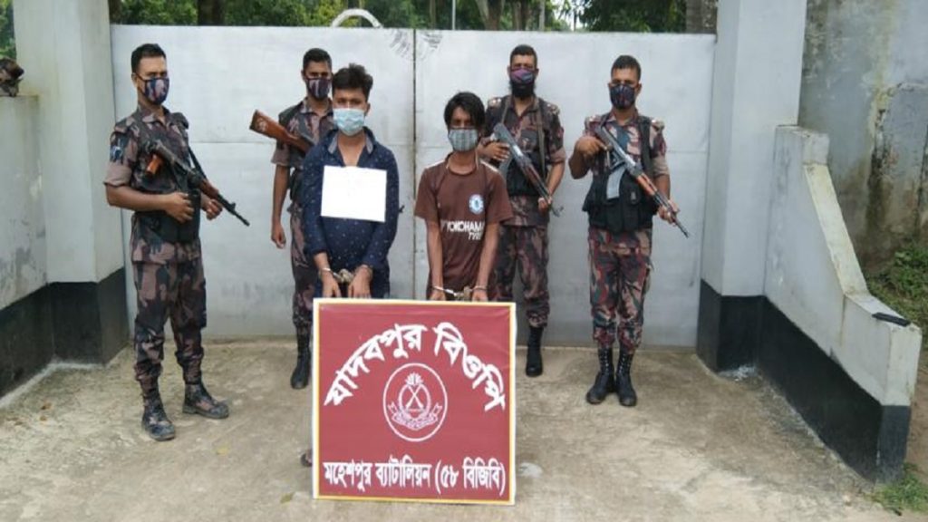 মঙ্গলবার (১০ আগস্ট) ভোরে তাদের আটক করা হয়। আটক দুই ব্যক্তি হলেন ফরিদপুর জেলার ভাংগা থানার খাপুড়া গ্রামের মোঃ বায়জিত শেখ (২৮) এবং বাগেরহাট জেলার মোড়লগঞ্জ থানার ধানসাগর গ্রামের মো. ইলিয়াছ (২৭)।