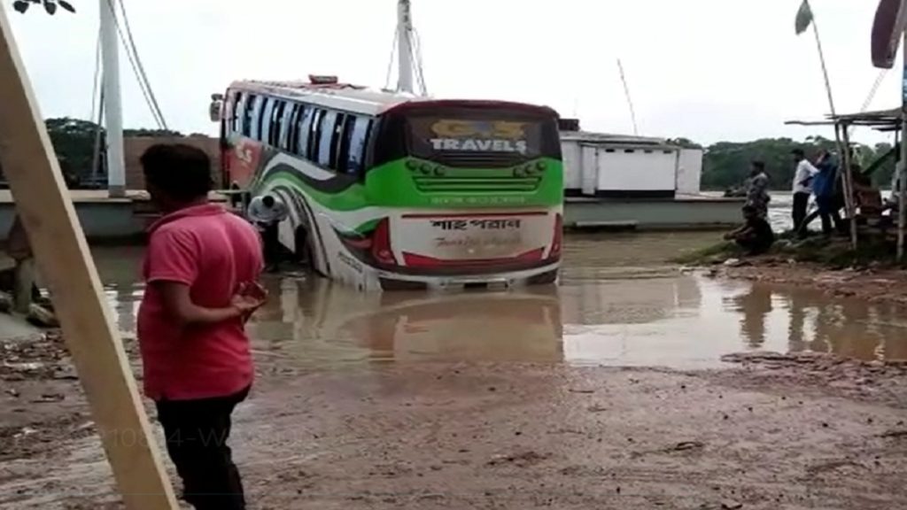 শনিবার (১৪ আগস্ট) সকালে ফেরিতে ওঠার সময় একটি বাস পন্টুনে আটকে গেলে এই অচলাবস্থা দেখা দেয়। প্রায় দুই কিলোমিটার সড়ক জুড়ে তৈরি হয় যানবাহনের সারি। এই ঘাটে প্রায় সাত শতাধিক যানবাহন পারাপারের অপেক্ষায় আছে।