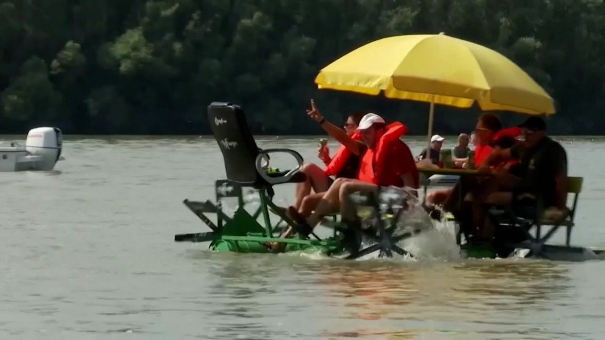 ভিন্ন ধারার পাগলাটে এক নৌকাবাইচ আয়োজন করে দৃষ্টি কাড়লো হাঙ্গেরির একটি গ্রাম। হারজিত ছাপিয়ে প্রতিযোগিতা যে নিছক আনন্দের, সেটাই এখানে মুখ্য। কস্টিউম থেকে নৌকার আদল, সবকিছুই হাসির রোল ফেলে দর্শকদের মাঝে।