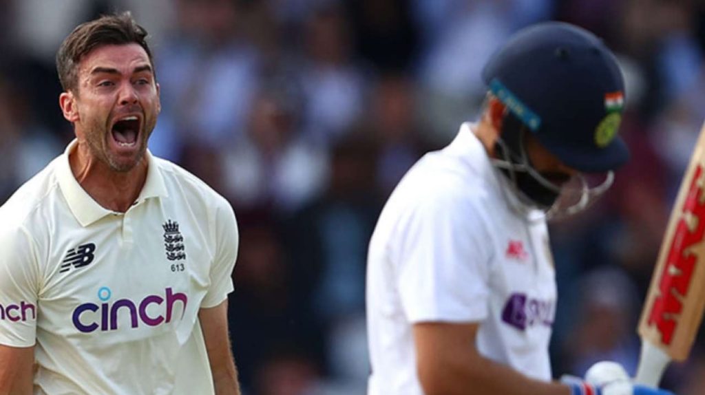 আর আজ (২৫ আগস্ট) সিরিজে দ্বিতীয়বারের মতো অ্যান্ডারসনের শিকার হলেন কোহলি। অ্যান্ডারসনের আউটসুইঙ্গারে পা ও ব্যাটের মাঝে বেশ কিছু জায়গা ফাঁকা রেখে অফ ড্রাইভ করেছিলেন ভারত অধিনায়ক। কিন্তু কেবল পরাস্তই হলেন না কোহলি; তার ব্যাট ছুঁয়ে বাটলারের হাতে বল জমা পড়লে অ্যান্ডারসন বসে যান অজি অফস্পিনার নাথান লায়নের পাশে। এ দু’জনই কোহলিকে আউট করেছেন সাতবার করে।
