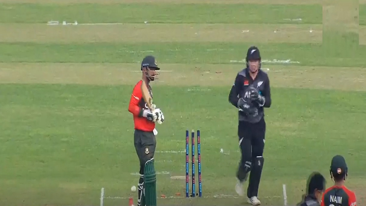 বাঁহাতি অর্থোডক্স বোলার রাচিন রাভিন্দ্রার টানা দুই বলে আউট হয়েছে লিটন দাস ও অভিজ্ঞ মুশফিকুর রহিম।