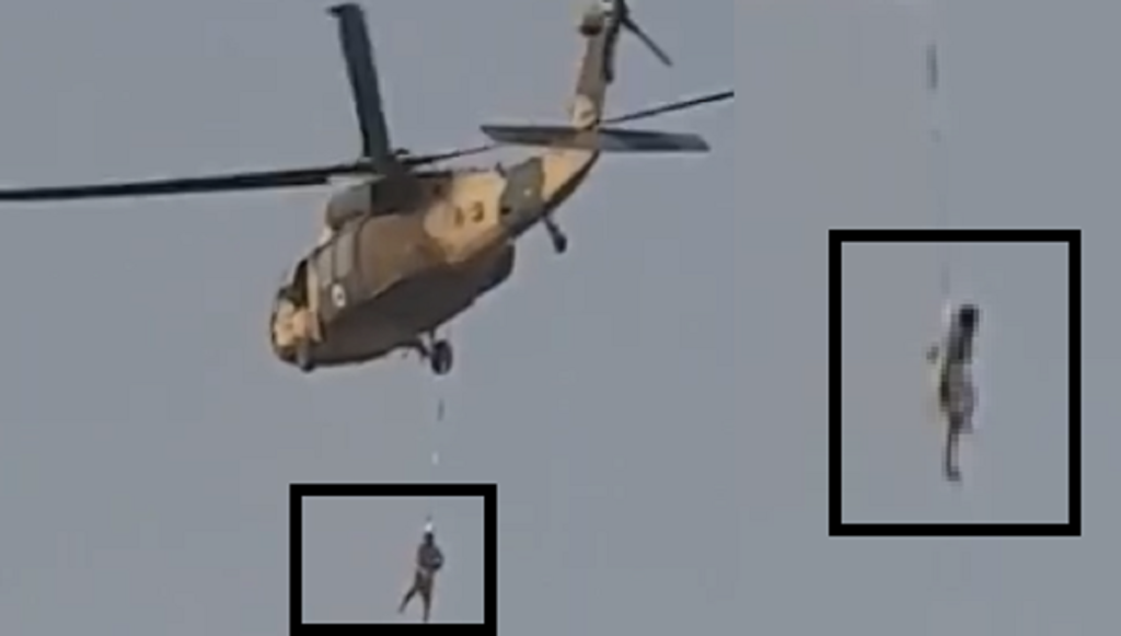 সম্প্রতি ইন্টারনেটে ভাইরাল হওয়া এক ভিডিওতে দেখা যায়, হেলিকপ্টারের সাথে দড়ি দিয়ে বাঁধা একজন ঝুলছেন। এই ভিডিওটি নিয়ে গণমাধ্যমে বিভিন্ন খবর প্রচারিত হয়। ফেসবুক ও টুইটারে ব্যপক আলোচিত এই ভিডিওটি পোস্ট করে অনেকেই দাবি করেছে, আমেরিকানদের সাথে দোভাষীর কাজ করার অপরাধে তালেবান তাকে বিমানে করে ফাঁসিতে ঝুলিয়ে হত্যা করেছে। তবে জানা গেলো এমন দাবি সম্পূর্ণ মিথ্যা।