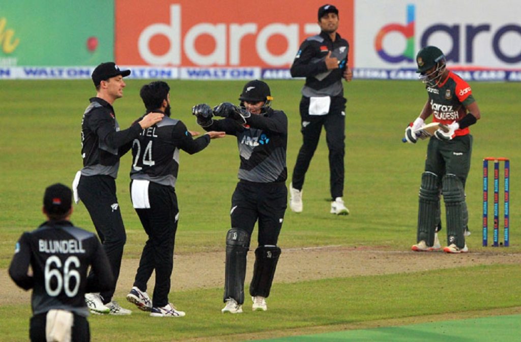 ম্যাচে জিতে সিরিজে ফিরে আসতে মরিয়া নিউজিল্যান্ড তাদের ব্যাটিং অর্ডারে এনেছিল বেশ কয়েকটি পরিবর্তন। কিন্তু তাতেও মাঝপথের বিপর্যয় রোধ করতে পারেনি কিউইরা। প্রথমে মোস্তাফিজের কাটারে বিভ্রান্ত হয়ে ফিরে গেছেন এ ম্যাচেই দলে ফিরে ঝড়ের আভাস দেয়া মারকুটে ওপেনার ফিন অ্যালেন। তারপর সাইফুদ্দিনের জোড়া আঘাতে এলবিডব্লিউ হয়ে প্যাভিলিয়নে ফেরেন উইল ইয়াং ও ব্যাটিং অর্ডারে প্রমোশন পাওয়া কলিন ডি গ্র্যান্ডহোম।