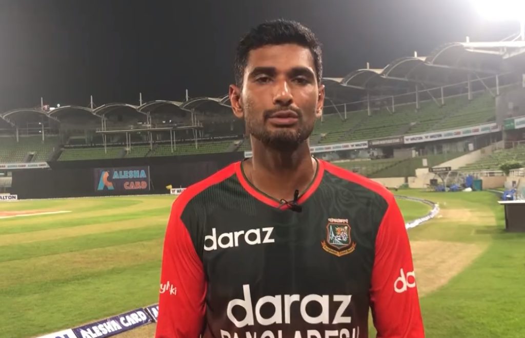 ১২৯ রানের লক্ষ্যে ব্যাট করতে নেমে আক্রমণাত্মক শুরু করেন দুই টাইগার ওপেনার লিটন দাস ও নাঈম শেখ। ২ ওভার শেষে বাংলাদেশের সংগ্রহ ছিল বিনা উইকেটে ১৫। ম্যাককঞ্চির করা তৃতীয় ওভারে দুটি বাউন্ডারি হাঁকানোর দুই বল পর আবারও স্ট্রোক খেলতে গিয়ে আউট হয়ে যায় লিটন দাস। ১৫ রান করে এলবিডব্লিউ হন বাংলাদেশের ওপেনার। এরপর শুরু হয় প্যাটেলের স্পিন ঘূর্ণি। ইনিংসের চতুর্থ ওভারে প্যাটেলের স্পিনে ধরাশায়ী হয় মাহেদী ও সাকিব।