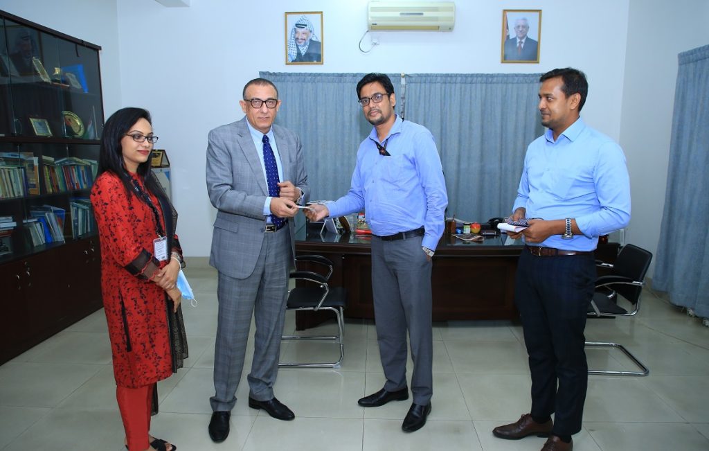 সম্প্রতি রাজধানীর বারিধারায় অবস্থিত ফিলিস্তিনি দূতাবাসে কাজী এন্টারপ্রাইজেস লিমিটেড-এর পক্ষ থেকে সিনিয়র ব্র্যান্ড ম্যানেজার ইশতিয়াক নাহিদ এবং ব্র্যান্ড ম্যানেজার নাহিদা বেগম ফিলিস্তিনে রাষ্ট্রদূত ইউছুপ এস ওয়াই রামাদ্বানের হাতে এই অনুদান তুলে দেন।