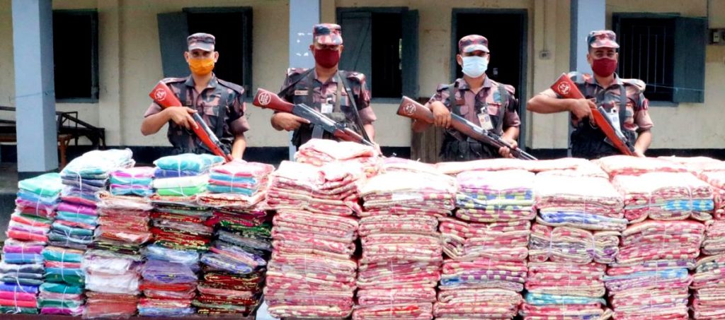 গতকাল মঙ্গলবার (৭ সেপ্টেম্বর) রাত পৌনে ২টার দিকে দুর্গাপুর উপজেলার সদর ইউনিয়নের ভরতপুর বিওপির নায়েব সুবেদার মো. ফরিদুল ইসলামের নেতৃত্বে ১৩ সদস্যের একটি টিম অভিযান চালিয়ে ২৫ লাখ ১১ হাজার টাকার শাড়ি জব্দ করা হয়। বিজিবির ৩১ ব্যাটালিয়নের সূত্র জানায়, চলতি বছরের ১ জুন থেকে ওই সীমান্তে অভিযান চালিয়ে প্রায় ৪ কোটি টাকার ভারতীয় পণ্য জব্দ করা হয়েছে।