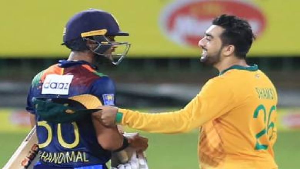 জবাবে কুইন্টন ডি ককের অপরাজিত ৫৮ আর এইডেন মার্করামের ২১ রানে সহজ জয় তুলে নেয় প্রোটিয়ারা। লঙ্কানদের হয়ে একমাত্র উইকেটটি নেন হাসারাঙ্গা। ম্যাচসেরা হয়েছেন শামসি।