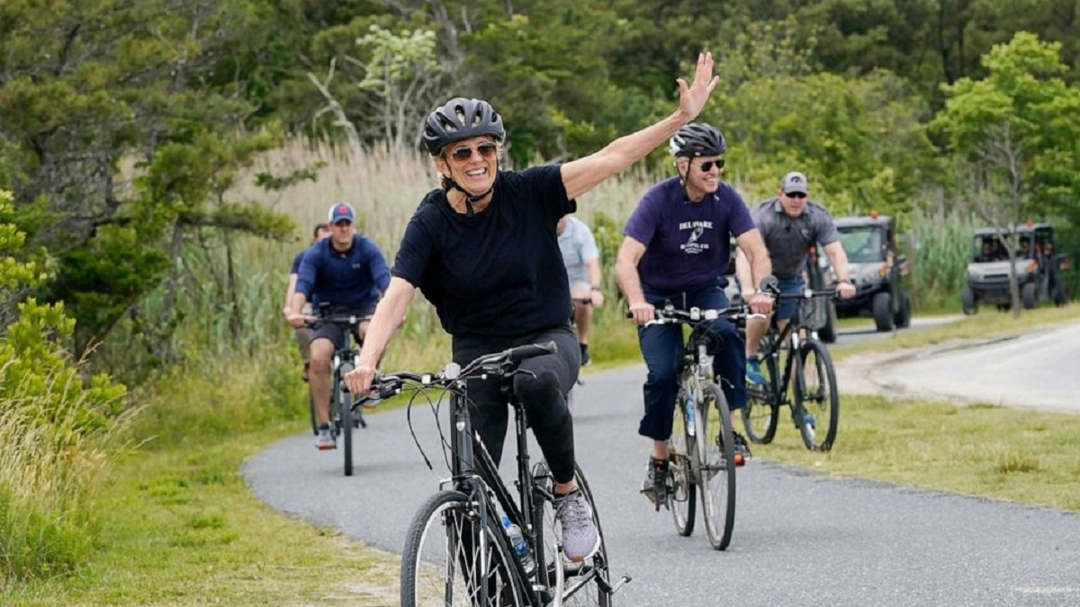 এসময় তার সাথে ছিলেন ফার্স্ট লেডি জিল বাইডেন। দু’জনই সাইকেল চালিয়ে ঘুরে বেড়ান সমুদ্র উপকূলে, পার্কে। এ সময় রাস্তার দু’পাশে দাঁড়ানো মানুষ অভিবাদন জানান তাদের। প্রেসিডেন্ট দম্পতিও কুশল বিনিময় করেন।