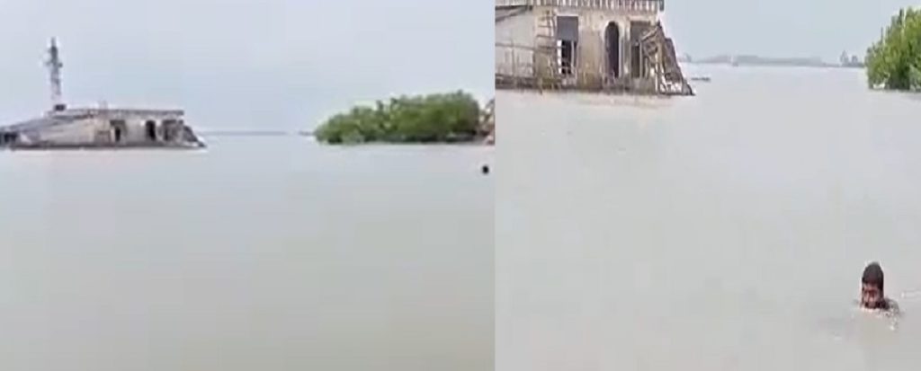 ঘটনা সাতক্ষীরার প্রতাপনগরের। ফেসবুকে এ নিয়ে একটি ভিডিও প্রকাশ করা হয়েছে। সেখানে দেখা যাচ্ছে, দূর থেকে সাঁতার কেটে মসজিদ থেকে ফিরছেন ইমাম মঈনুর রহমান।