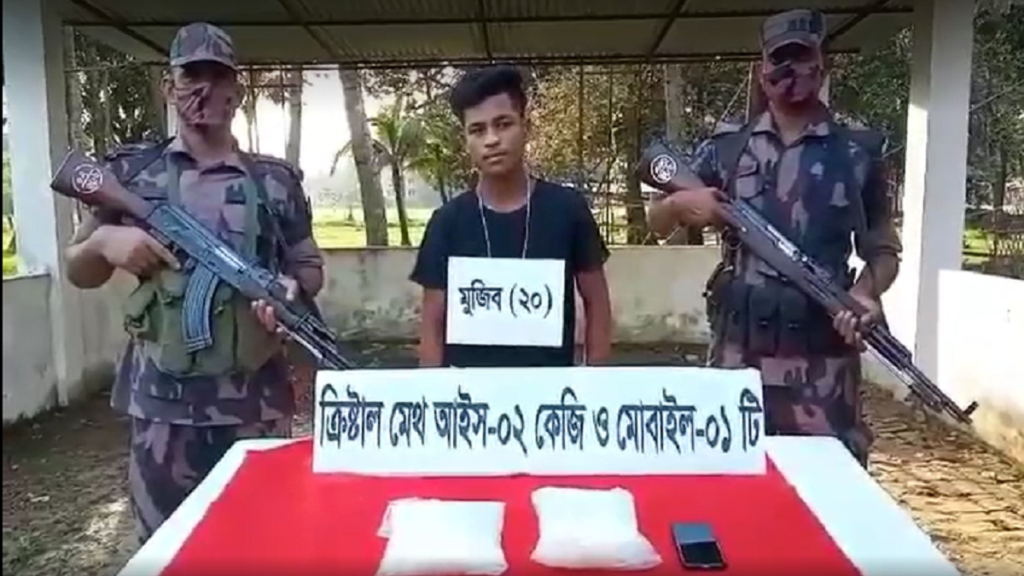 বৃহস্পতিবার (২৩ সেপ্টেম্বর) বিজিবির টেকনাফ ব্যাটালিয়ন-২ এর বিশেষ অভিযানে মুজিব নামে একজনকে আটক করা হয়। অভিযানের সময় সন্দেহভাজন ব্যক্তি বাড়ির পেছনের দরজা দিয়ে পালানোর চেষ্টা করলেও শেষপর্যন্ত বিজিবি তাকে আটক করে। আটককৃত ব্যক্তির দেয়া তথ্যে বাড়ির ফলস সিলিংয়ের ওপর থেকে ২ কেজি ক্রিস্টাল মেথ আইস উদ্ধার করা হয়।