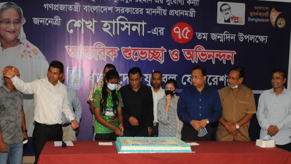 প্রধানমন্ত্রী শেখ হাসিনার ৭৫তম জন্মদিন উপলক্ষ্যে কেক কেটেছেন বাংলাদেশ ফুটবল ফেডারেশনের সভাপতি কাজী সালাহউদ্দিন। বাফুফে ভবনে জাতীয় নারী দলের ফুটবলারদের উপস্থিতিতে কেট কাটেন তিনি। এছাড়াও দেশের বিভিন্ন ক্রীড়াঙ্গনে পালিত হয়েছে প্রধানমন্ত্রীর জন্মদিন।