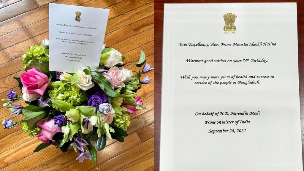 প্রধানমন্ত্রী শেখ হাসিনার ৭৫তম জন্মদিন উপলক্ষে তাকে শুভেচ্ছা বার্তা ও ফুল পাঠিয়েছেন ভারতের প্রধানমন্ত্রী নরেন্দ্র মোদি।